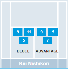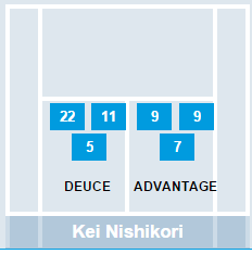これを見る限り、3Rのガルシアロペス戦で1stサーブ・アドサイドの得点率が低かったことが目立つものの、デュースとアドでどちらのサイドの得点率が高いか、明確なことは言えないと思います。