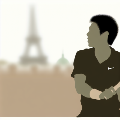 chatGPTの画像がオシャレー!エッフェル塔を背景に伝家の宝刀BHの構え。錦織圭のシルエットをよく捉えてますね。UNIQLOじゃなくNIKEなのもご愛嬌。