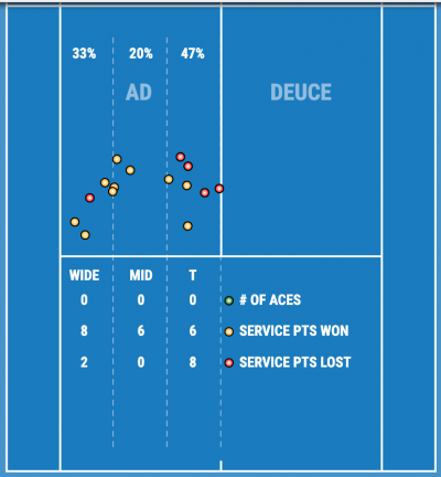 今日のスタッツはまだ出ていませんが、1回戦の2ndサーブのコース配分です。