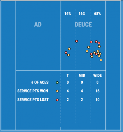 1回戦の対戦相手、ラモスビニョラスは左利きでバックハンドが狙い目だったため、デュースサイドではワイドがかなり多かったのですが、このコースへのセカンドは過去は2割以下でした。