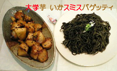 大学芋とイカスミスパゲッティで攻めてみました。