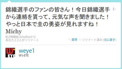 Wilsonさんによると「電話で錦織の元気な声を聞けた」とのことですから、希望を持って楽天ジャパンオープンを楽しみましょう!
