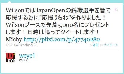 - twitterでW’s eye(Wilsonの公式アカウント)をフォローする。
