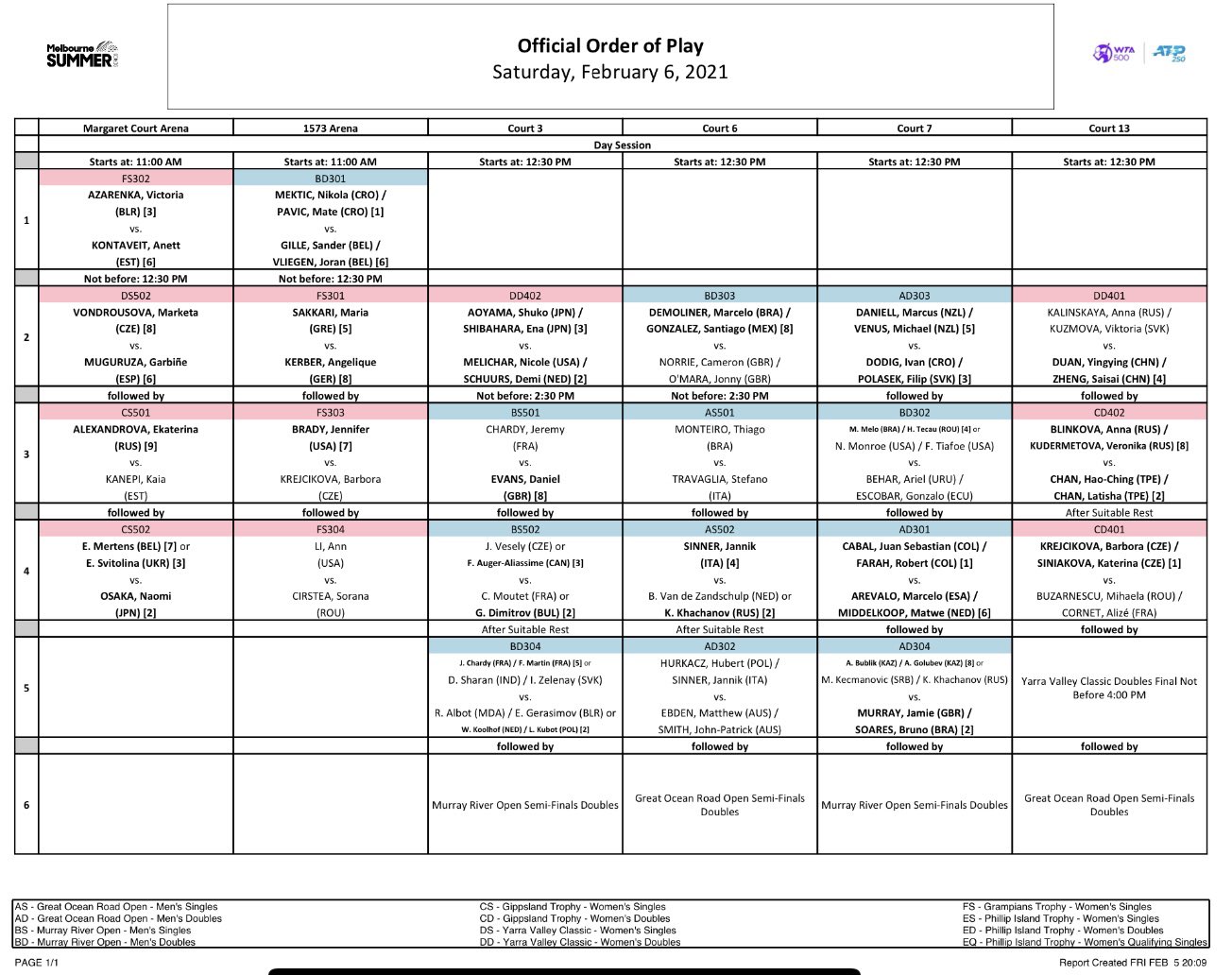 メルボルンの金曜日のシングルスの試合は第3セットがマッチタイブレとなります。金曜日は雨予報なので屋根付きのマーガレット・コート・アリーナ以外のコートで試合ができるかどうか分かりません。