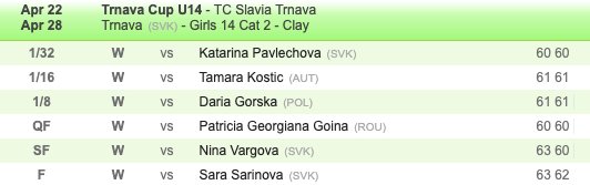 J2 ピエシチャニ(スロバキア) で13才のリンダ・フルフビルトバ選手が複で優勝、単で決勝まで進んでいます。フルフビルトバ選手のジュニア・ランキング・ポイントはガウフ選手の13才時の最高ポイントを超えました。