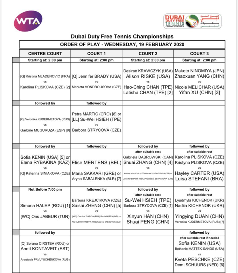 ◆WTA(P)ドバイ 予選2/15-17; 本戦2/17-22