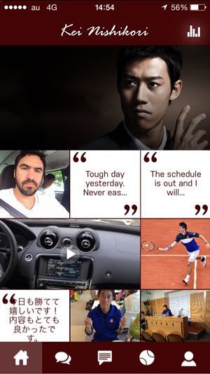 錦織圭が近く発表するのは公式アプリ! http://t.co/TBnByxTd91 これまでのSNS発信に加え、動画や音楽、錦織ファンとのチャット機能など。 今から写真付きで紹介をつぶやきます。